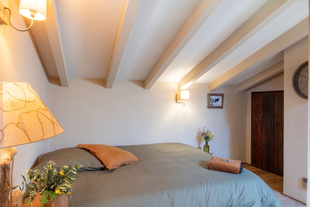 A l’intérieur, la bergerie de 80 m2 continue de charmer avec sa cuisine entièrement équipée ainsi que son coin repas convivial face la cheminée. Face au jardin son chaleureux salon vous offrira grâce à son poêle à bois ( sa cheminée) de belles soirées au coin du feu.